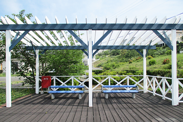 スペイン瓦と白壁を使い、街並み景観に配慮して作られた、おしゃれなゴミステーションです。