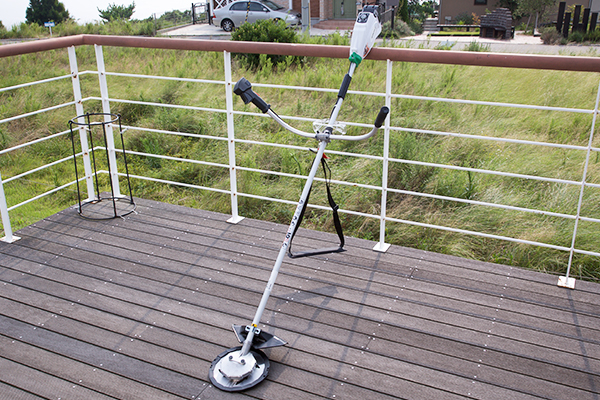 庭のお手入れに便利な充電式の草刈機。静かで軽いので長時間の作業もラクラク。(オーナー様無料)