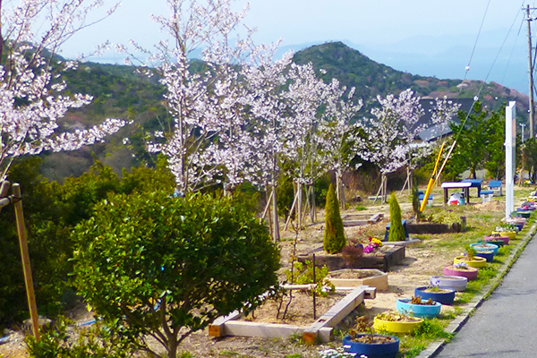 タウンの東側、約300㎡の敷地に桜を10本植樹しています。春には海を眺めながらお花見も楽しめます。
