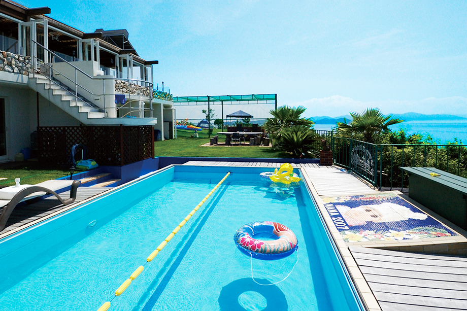 ご自宅の敷地に海を眺めるプールを設置されています。まさに毎日がリゾート気分です。