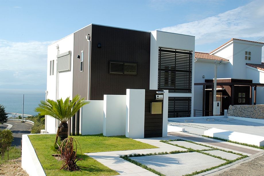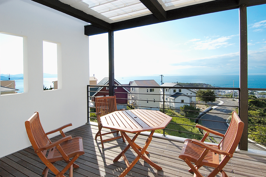 道路側はプライバシーに配慮して開口部を少なめに、海側は眺望を楽しむために大開口を設ける住宅が多いようです。