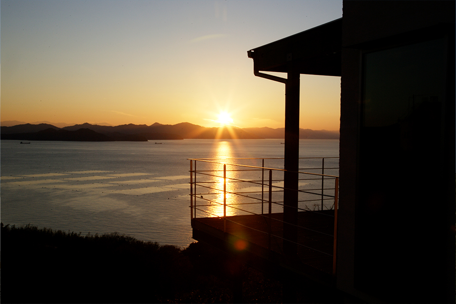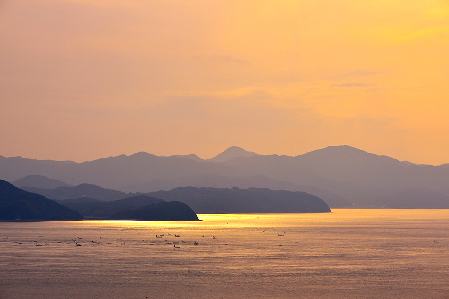タウンから眺める夕景。海と四国の山々を赤く染める夕日は四季折々に異なる表情を見せてくれます。