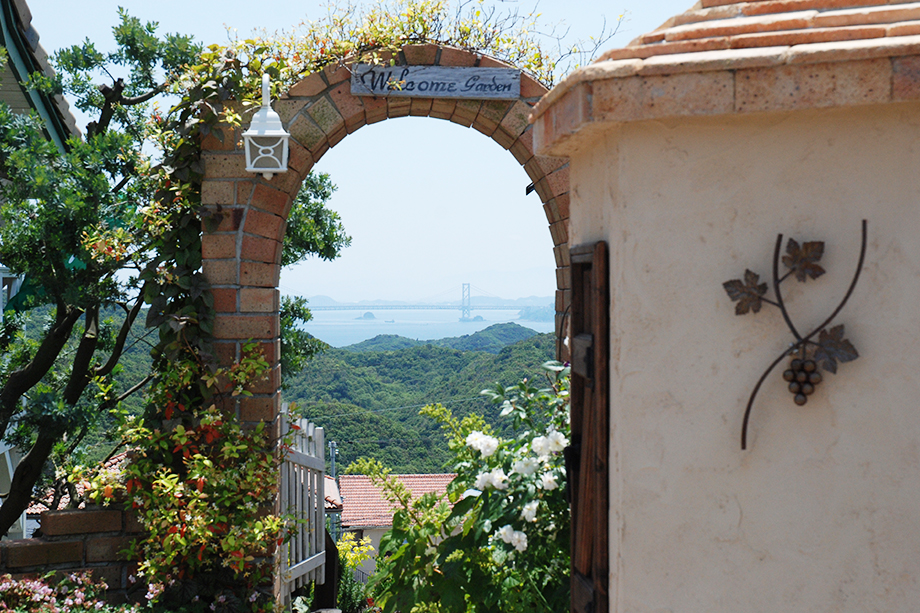 エントランスアーチから見える大鳴門橋の借景は、まるで絵画のようです。