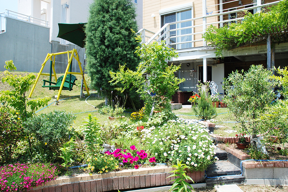 数えきれないくらいの花が咲くお庭は、まるで植物園のようです。