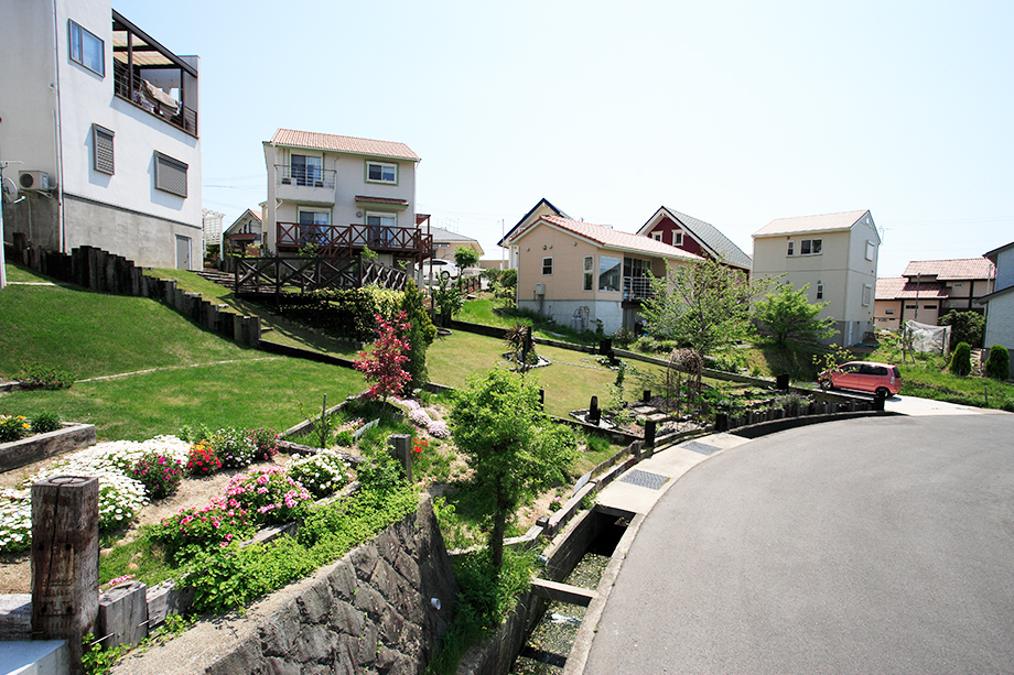 「晴海ヶ丘」の一番の魅力である、タウンから眺める素晴らしい海の眺望や、おしゃれな街並み景観、また各オーナー様の手入れが行き届いたお庭などをご覧頂けます。