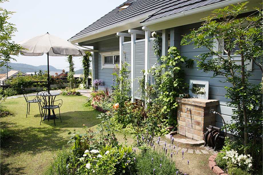 あわじオープンガーデン参加のY邸のお庭。きれいな芝生のガーデンで楽しむカフェタイムは最高の贅沢。