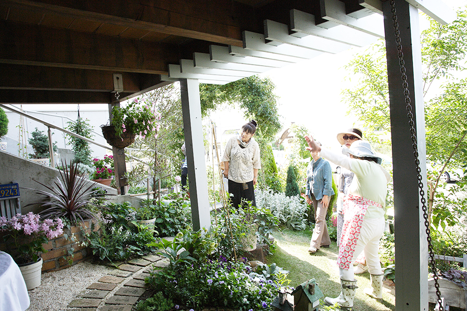 あわじオープンガーデン参加のT邸のお庭。建物のデッキ下を利用した見事なガーデンスペース。