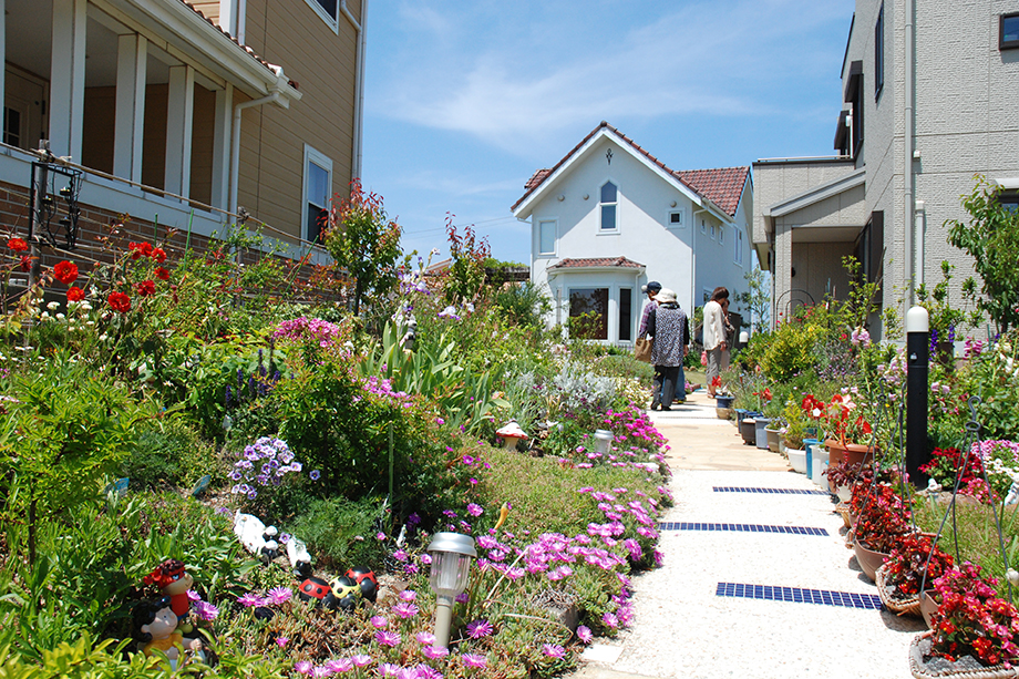 丁寧に手入れされたそれぞれのお宅のお庭同士が、相乗効果となって美しい風景を生み出しています。