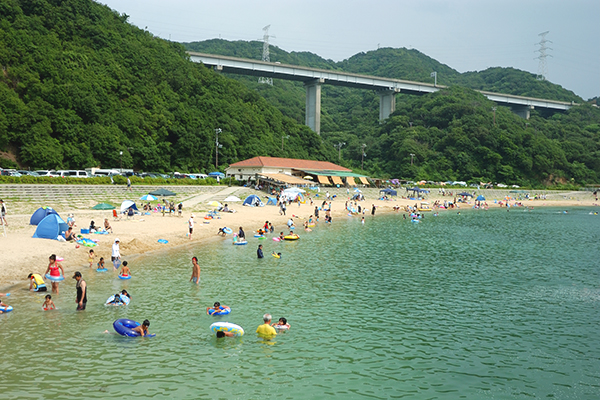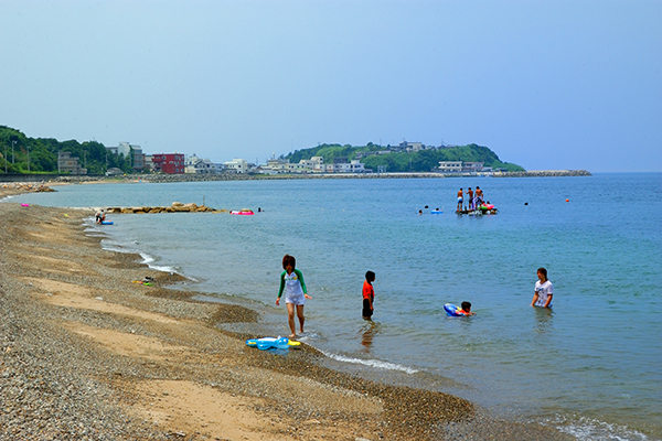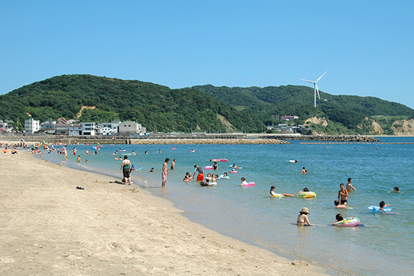 遠浅で南国ムード漂う海水浴場として若者やファミリーに人気。シャワー、トイレ、更衣室などの設備も充実。