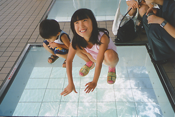 橋桁空間を利用した450mの遊歩道で海上散歩が楽しめます。足元の眺望ガラスから見る渦潮は圧巻。