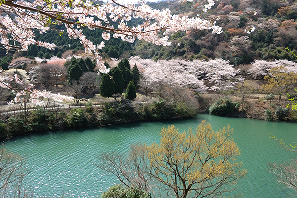 ダム湖周囲は800本の染井吉野があり桜の名所。テニスコートや登山道も整備されています。