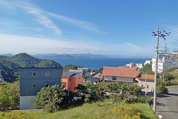 2階の窓から海と四国を望む2LDKの別荘です。土地80坪付きで1,780万円。南側に広いお庭があり、家庭菜園や