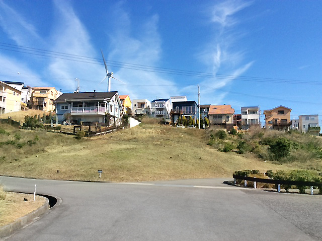 タウンの北東端に位置し、北に海を眺める3面道路の120坪。 南北に長い敷地で菜園やガーデニングが楽しめます。