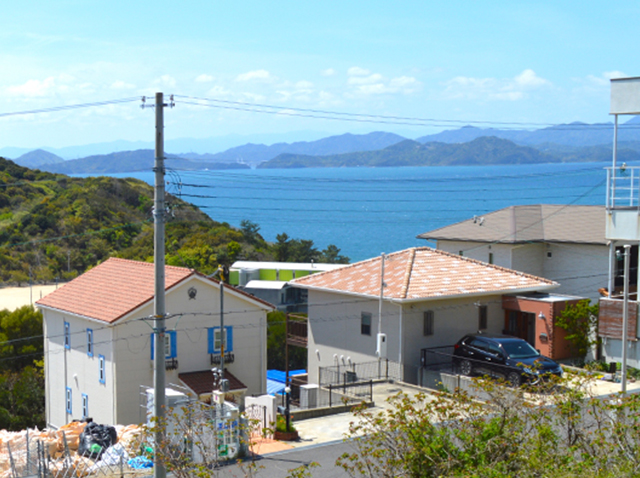 タウンのサウスエリア、2街区に位置し、眺望・陽当たりともに良好な130坪。 南西に海と四国を見晴らすプレミアムな物件です。
