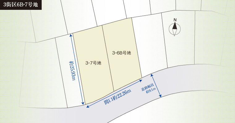 敷地の南側には幅員9.1mの幹部道路が接しており、建物が建っても南側の眺望は