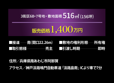 南西に大鳴門橋と小鳴門橋を望む、南向き傾斜の156坪。